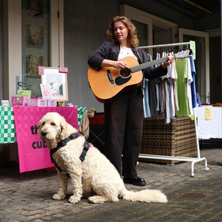 Het publiek wurmde zich door de gangen (want omdat het ging regenen konden we niet in de binnentuin) en het was heerlijk gezellig druk. Er waren sieradenmakers, kledingontwerpers, tattooartiest, koekjesverkoper, kaartlegger, zeefdrukker enzovoort.